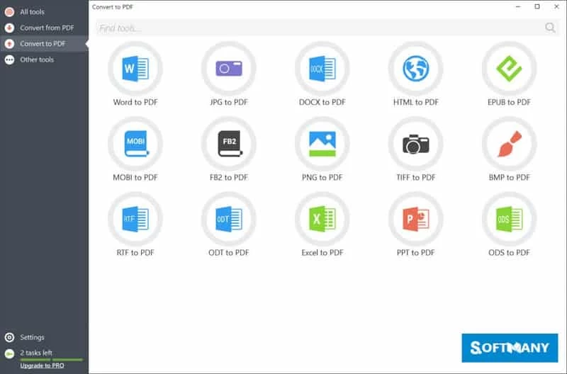 该软件在右侧提供了一个大型面板,方便用户进行各种更改和设置。其主要功能之一是将 PDF 文件转换为多种格式,支持 BMP、HTML、GIF、WMF、EPS、PNG、DOC、TIFF、ODT 等多种格式。此外,它还支持将文档、图像、HTML 或 EPUB 文件转换为 PDF。转换完成后,您可以修改文件、标题、添加密码以及调整布局设置。